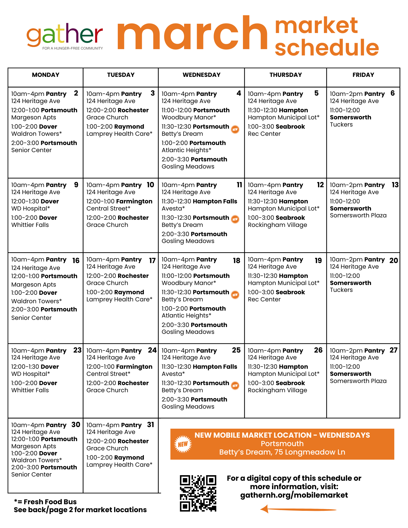 We currently have mobile markets in Dover, Portsmouth, Rochester, Somersworth, and Seabrook.